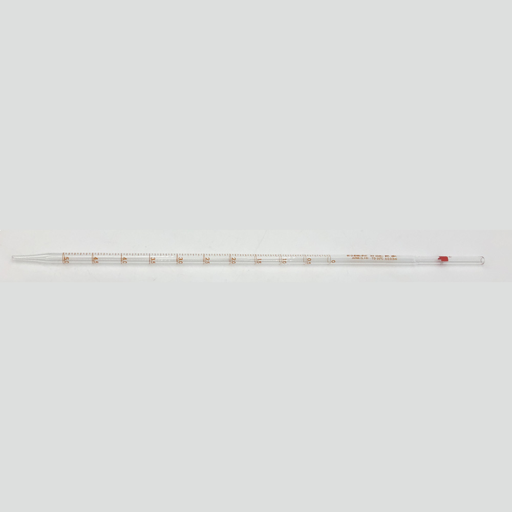 ●仕様:普通目盛●容量(mL):5●公差(±mL):0.03●一目盛(mL):0.05●全長(mm):375●上部外径(mm):φ7●カラーコード:赤●材質:PYREX(R)(硼珪酸ガラス)●JIS R3505 規格品 クラスA●入数:1個入
