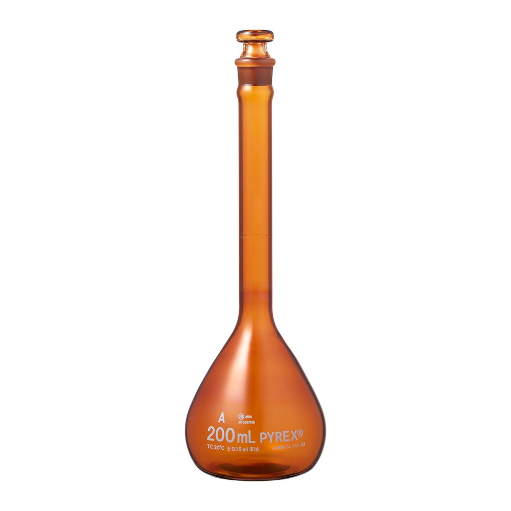 ●仕様:茶●容量(mL):200●公差(±mL):0.15●外径×高さ(mm):75.5×220●栓サイズ(TS):16●材質:PYREX(R)(硼珪酸ガラス)●JIS R3505 規格品 クラスA●オートクレーブ:不可●入数:1個入