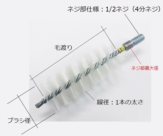 ●ハンドル・取手・シャフト等に接続し、パイプ・チューブ内部の洗浄に便利です。●ブラシ径×線径:φ150×0.9mm●ネジ部仕様:1/2ネジ(4分ネジ)●ブラシ材質:ナイロン●ブラシサイズ:全長/200mm、毛渡り/130mm●ネジ部最大径:約φ15mm
