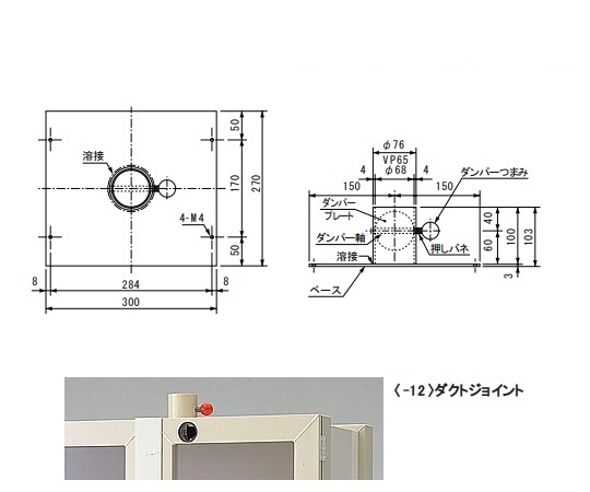 ●排気機能付薬品庫向けオプションです。●ダクト外径:φ76mm