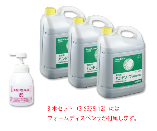 業務用薬用ハンドソープ Sani-Clear (サニクリア) 無香料 5kg 3本入 フォームディスペンサ付き 3本セット H5000