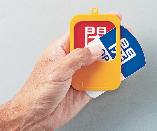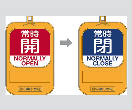 ●★札を回転させるだけで表裏両面の表示内容が同時に切り替わる、機能性に優れたバルブ開閉表示札です。●★表示内容:常時開(NORMALLY OPEN)⇔常時閉(NORMALLY CLOSE)●★色(開):赤●★色(閉):青●★両面表示 ●サイズ(mm):90×60(吊穴含まず)●★厚さ(mm):10●★質量:28g●材質:本体カバー/PC(ポリカーボネート)、表示札/ABS樹脂●★窓サイズ:47×50mm●★前後左右対応式チェーン用吊下げ穴(4mmφ)●★取付方法:吊り下げタイプ(ボールチェーン等別売)●★用途:あらゆるバルブの設置場所に。