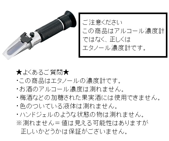 ●アルコール液の測定に適しています。●測定範囲(%):0~80●対象液:エタノール●サイズ:40×40×140mm●重量:160g●測定精度:0~50%未満/±1%、50~80%/±2.5%●最小目盛:1%●付属品:目盛調整用ドライバー、スポイト、本体収納カバー