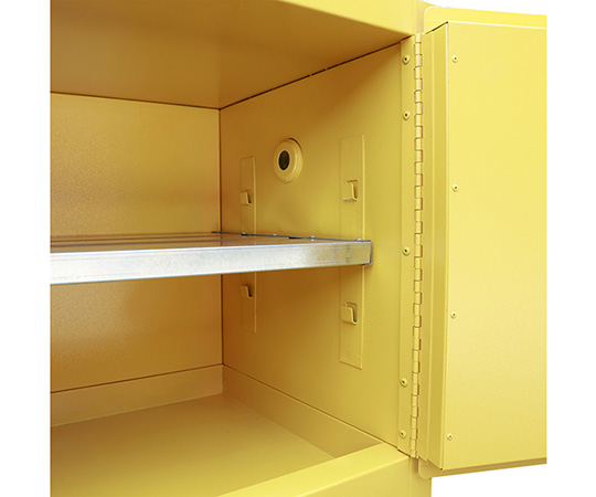 ●鉛フリー塗装で、耐蝕性、防湿性に優れます。●2重鉄板構造(38mm)で熱を通しにくいです。●棚板の高さは65mmごとに調節可能です。●棚は漏液しない構造で、底は53mmまで漏液を貯められる構造です。●扉は3点止め構造で確実に閉められます。●耐火性に優れています。●外寸法(mm):1090×460×610●内寸法(mm):1010×380×510●材質:スチール●棚板耐荷重:50kg●重量:67kg●鍵付き●米国FM規格適合品●付属品:棚板1枚●※運送費・搬入費・据付費・組立費等が別途必要です。お問い合わせください。