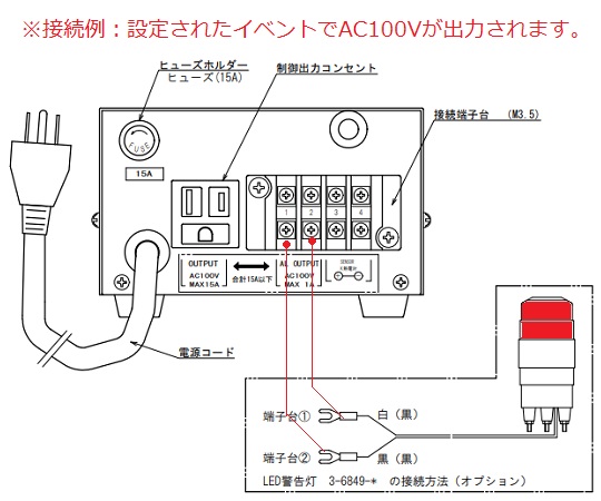 ●100V用アラート出力で汎用性を持たせました。●一般的な温度調節器にアラート用出力端子を設けました。●アラート用出力は100V/1A仕様となっており、警告灯やブザーなど様々な組み合わせが可能です。●温度制御と警報制御が設定でき、警報設定に達すると警報用出力がONされます。●温度制御方式はPID制御で、高精度の温度コントロールが可能です。●SSRとリレーのダブルコンポーネントで、SSRに不具合が発生した場合リレー回路が連続通電を遮断します。●OUTランプで現在の出力状況がひと目で確認できます。●仕様:130×160×84mm●電源:AC100V 50/60Hz●接続容量:AC100V MAX15A(アラート用出力込み)●温度制御方式:PID制御(オートチューニング付き)●出力制御方式:SSRによる電圧出力●安全機能:SSRとリレーのダブルコンポーネント、15Aヒューズ●電源コード:約1.8m(3Pプラグ)●重量:約1.5kg●温度表示精度:±2℃または指示値±(0.3%+1digit)のどちらか大きい方●センサータイプ:K熱電対●設定温度:-100~+1000℃●設定方式:UP/DOWNキー●タイマー種類:オートスタート・オートストップ・SVスタート●タイマー設定可能時間:1~99時間59分●接続端子:制御出力/3Pコンセント、警報出力・センサー入力/M3.5Y端子台●付属品:シース型K熱電対センサー(0~750℃対応)●※付属のK熱電対センサーは標準的なタイプですので、高温対応のセンサーは別途ご準備ください。