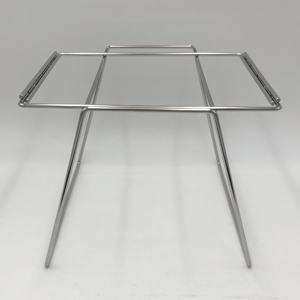 ●天板固定棚に落下防止用の枠付きで、未使用時はスタックして収納が可能です。●型番:260角用台●サイズ(mm):275×275×200●重量(g):約600●架台耐荷重:5kg●架台材質:ステンレス(SUS304・電解研磨)●架台使用時、ガラス板裏面までの距離:195mm