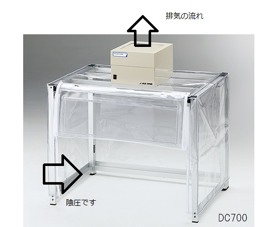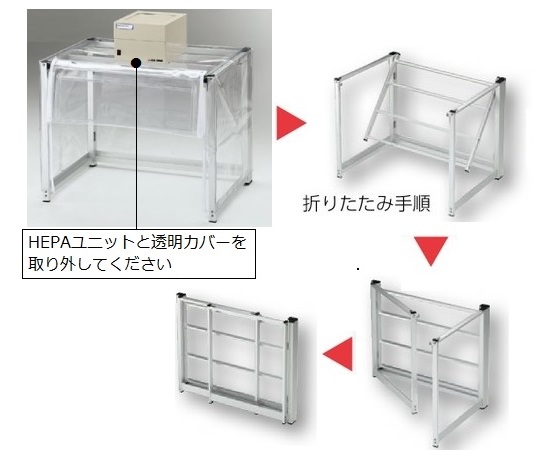 ●必要な時だけセットできるお手軽な粉体用ドラフト。●不織布製プレフィルターと抗菌・防臭HEPAフィルターで粉塵を取り除いて、ワークスペースから安全に排気されます。●工具無しでフレームを折りたたむことができますので、使用しないときは容易に収納することができます。●シートカバーの前面に窓が付いていますので、作業スペースが見やすいです。●シートカバーの前面はめくり上げて面ファスナーで固定できますので、楽に作業が行えます。●ファンユニット:1台付き●サイズ(mm)※:700×500×550(700)●材質:フレーム/アルミニウム、シートカバー/軟質PVC(塩化ビニル樹脂)、窓/硬質PVC(塩化ビニル樹脂)●吹出風量:約1m3/min●吹出風速:約0.5m/s●集塵効率:99.97%以上(0.3μm粒子)●HEPAフィルターサイズ:200×200×50mm●電源:AC100V 50/60Hz 36/38W●電源コード長:1.8m(2Pプラグ)●折りたたみ時サイズ:700×75×550mm(フレームのみ)●※( )はユニットを含んだ高さです。●交換用HEPAフィルター/3-1424-11、交換用プレフィルター/ 3-1424-12