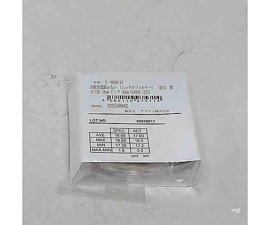 ●X線リソグラフィー技術と高度な電鋳技術を組み合わせて実現した高精度なふるいです。●メッシュ部に網目の無いふるいで高速分注が可能、隙間に粉体が溜まりません。●高耐食材を適用することにより、腐食性のある粉体粒子も対応可能です。●全数検査証明書付きで安心して使用できます。●開口寸法(μm):18●ピッチ(μm):30●材質:フィルター部/ニッケル、フレーム部/ステンレス(SUS304)●フレーム規格:JIS Z8801-1(φ75mm)準拠●穴形状:□●穴径交差:±0.8μm●付属品:検査証明書●内径(mm):75●内高(mm):20●外高(mm):26●材質:SUS304●※穴形状は○も対応可能です。●※より丈夫なメッシュが厚く、開口率の低いH50シリーズも対応可能です。●※サポートメッシュ(0.21mm□1.8mmP)の追加も可能です。お問い合わせください。