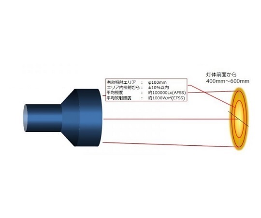 ●★晴天時の正午±2時間に地表に到達する太陽光と同じスペクトルの光を出す照明器具です。●★スーパースポット(集光)タイプで、真夏の太陽光と同等のエネルギー(放射照度:1kW/㎡)の光を照射可能です。●★照射距離2mで中心放射照度約1kW/㎡の光を実現。(配光の調整はご相談下さい)●★透明フィルタを使用するため、中心が非常に強い照度となります。●★紫外光~赤外光(350~2500nm)を自然太陽光に高近似させました。●★各種温度関連試験、自然環境下での化学反応再現実験に納入実績多数あります。太陽電池の簡易評価用にも多くご利用いただいています。●★経時変化がほとんど無い。「平均演色評価数は高くても、使用しているうちに光の特性が変わっている」そのような光源をご使用していませんか。●★お客様が「雨や曇りの日」でも「昼夜を問わず」作業ができるよう、「24時間365日晴れ」を提供します。●★型番:XC-500ESS(光源部。電源コード付き)●仕様:太陽エネルギー試験用透明スーパースポット照明タイプ●用途:太陽エネルギー試験用●★使用フィルタ:透明(Eフィルタ)●使用可能電圧範囲:90~132V●電源:AC100V(AC90~132V) 50/60Hz 9A●ランプ容量:500W●点灯方向:下~横向き(上向き使用不可)●中心光度・ビーム角:約26000cd・約60°●平均演色評価数:96●放射波長域:350~2500nm●色温度:約5500K●サイズ/重量:Φ250×376mm/約2.5k●★使用ランプ:キセノンランプ(型式:SET-500F)●★・ランプ交換推奨時間:約1500時間g●●★【XC-500ESSの主な使用例】●★温度上昇試験●★遮熱性試験●★耐熱性試験●★耐光性試験●★太陽電池の簡易評価●★光触媒実験●★太陽光下における化学反応再現実験●★※近赤外波長(850nm、905nm、940nm等)に感度のある赤外カメラ、赤外線センサの評価をご検討のお客様は、特注品にて製品を提供しています。別途お問い合わせ下さい。●★※その他の使用例も、「主な使用例の紹介資料」をダウンロードしてご覧いただけます。●購入をご検討中の御客様にはデモ機のお貸し出しが可能です。お問い合わせください。●無償デモ機の期間は1週間です。