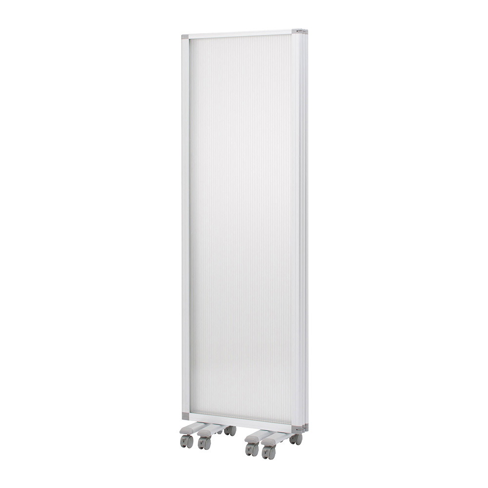 ●折りたたんで収納できます。●キャスター付きですので移動が容易です。●仕様:ポリカーボネート・半透明●サイズ(mm):1800×350×1800●材質:パネル/PC(ポリカーボネイト)、フレーム/アルミ、ベース/スチール、キャスター/ナイロン●重量:10kg●折りたたみ時サイズ:600×350×1800mm●組み立て式●脚部:キャスターベース×4
