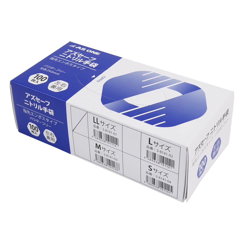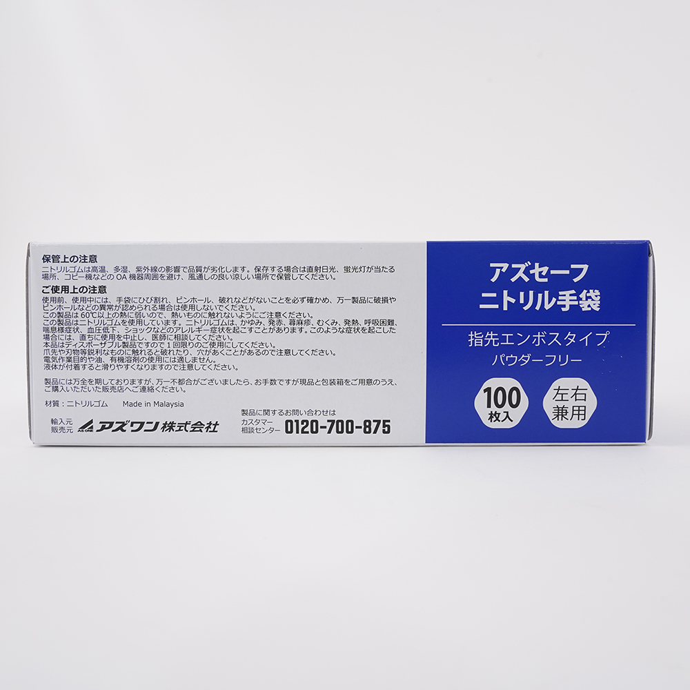 アズセーフニトリル手袋 青 (指先エンボス) LLサイズ 1箱(100枚入)