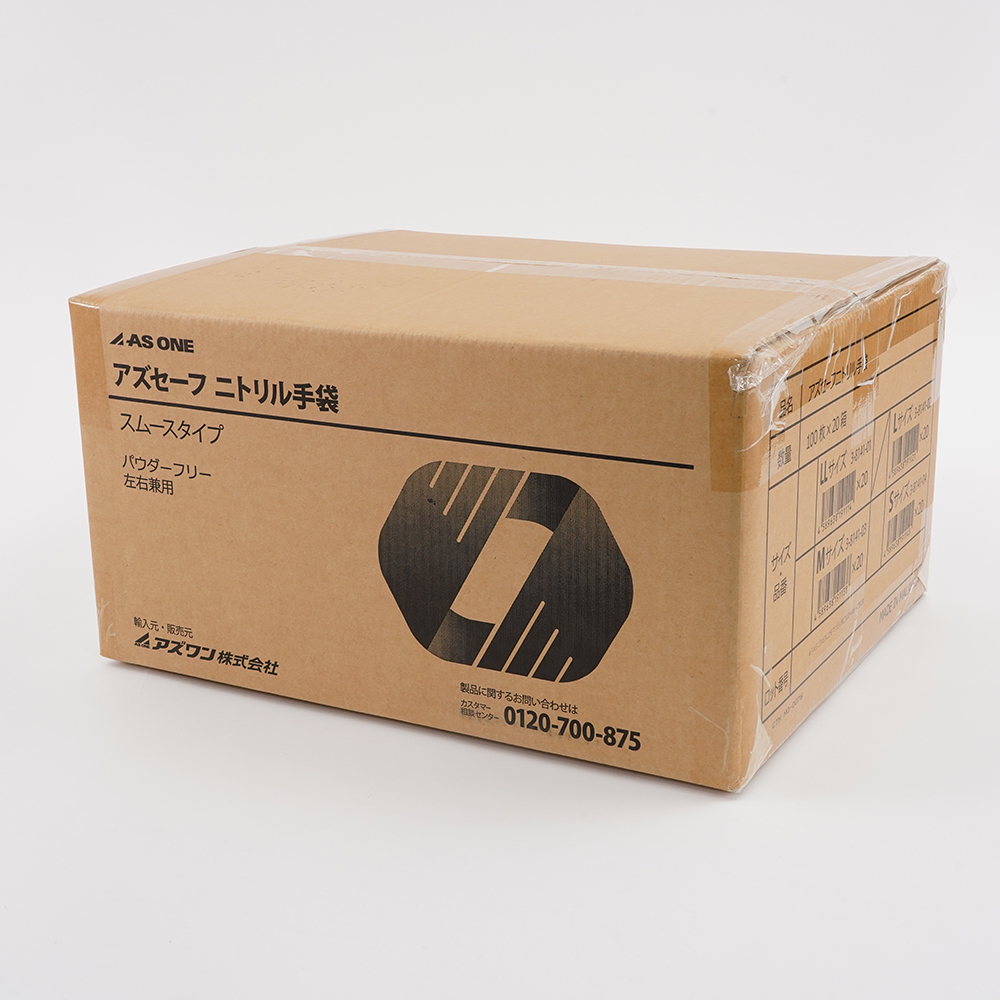 ●指先に滑り止め加工を施しています。●ピンホール試験(AQL1.5)に合格しています。●サイズ:L●入数:1ケース(100枚入/箱×20箱入)●材質:ニトリルゴム●全長:約240mm●掌の幅:約100~110mm●中指長:約78mm※参考値●厚み:指先/約0.09mm, 掌/約0.06mm●左右兼用●エンボス加工:指先のみ●パウダーフリー●●*本製品は【3-8141-02(アズセーフニトリル手袋青(指先エンボス)Lサイズ100枚入)×20箱】のケース販売用の品番となります。