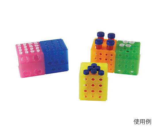 ●異なるサイズのチューブを保管することが可能です。●連結が可能です。●オートクレーブ可能です。●サイズ(mm):108×108×113●入数:1組(5色入)●材質:PP(ポリプロピレン)●色:青・黄・緑・オレンジ・ピンク●適合チューブ数:1.5・2.0mL×16本、15mL×10本、50mL×4本、3~7mL×12本(いずれか1タイプのみ可能)●穴径:1.5・2mL用/φ11.5mm、3~7mL用/φ12.5mm、15mL用/φ17mm、50mL用/φ30mm●オートクレーブ可