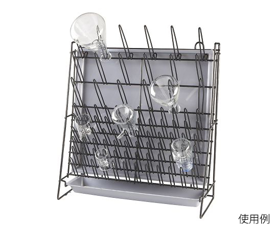 ●試験管、ビーカー、フラスコなどの実験用具をフックに引っかけて乾かすラックです。●底の水受け皿は容易に取り外しできます。●壁掛け、スタンドどちらも可能です。●HDPEコーティングされたスチール製のワイヤーで付く垂れており、耐久性に優れます。●サイズ(mm):462×182×525●材質:ラック/スチール(HDPEコート)、トレー・背面パネル/PS(ポリスチレン)●フック:76mm×72本、127mm×18本