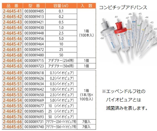 ●液体を1回吸引をして、再吸引せず最大100回まで連続で分注できます。●連続分注に加え、連続吸引・滴定・吸引+連続分注が可能です。●コンビチップアドバンスとの組み合わせで高精度な分注が可能です。●自動でコンビチップアドバンスの容量を認識します。●仕様:E3x●電源:AC100V 50/60Hz●付属品:コンビチップアドバンス(0.1~50mL)×各1本、充電アダプター×1個●●取扱説明書はこちら