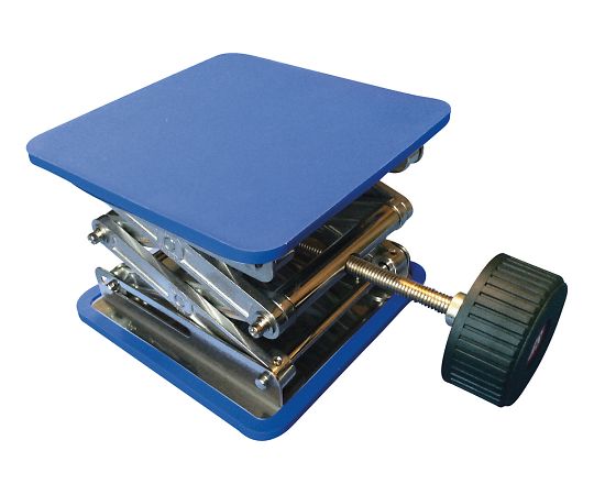 ●上下板がシリコンゴムでカバーされているため、横滑りがしにくくガラス容器等を載せたときの落下防止になります。●天板サイズ(mm):150×150●伸縮範囲(mm):75~250●耐荷重(kg):27●上下板:SUS430(シリコンマット付き(ブルー))