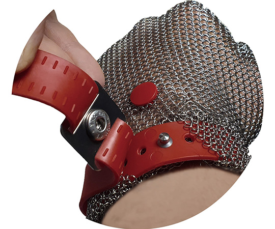●ステンレス製で耐久性に優れています。●リストバンドの色で容易にサイズを識別できます。●PUベルトの大部分がSUSメッシュで覆われているため、ベルトの消耗を防ぎます。●ベルト色:白●入数:1枚(左右兼用)●材質:手袋/SUS304、リストバンド/PU