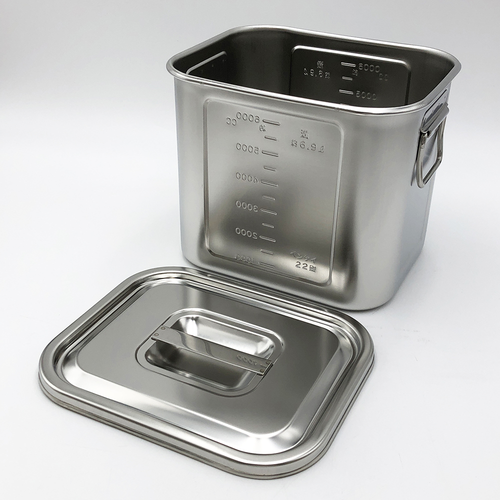 ●★目盛りが内側から読めます。●★縦横比10対8の並べやすく、スタッキングしやすい形状です。●★板厚:約0.5mm●材質:本体・フタ/ステンレス(SUS304)●容量:6.9L●★外寸法(フタ付き):約239×195×195mm●内寸法(フタ付き):220×178×191mm●取手付き●重量(g):約1,175●★※名入れ対応可●★※名入れサービスは、アズワンオリジナルのサービスです。●★※【名入れに関するお問合せ】●★▼アズワン株式会社サービスプロモーショングループ●★▼E-mail:tokuchu@so.as-1.co.jp●コード番号:10024422