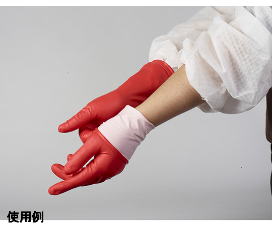 ●2層構造により、手袋の破損や溶解が発生した際のリスクを低減します。●高い耐薬品・耐溶剤性能を持っているため、薬品の取り扱いにおける人体の安全保護に適しています。●サイズ:LL●タイプ:指先エンボス●入数:1箱(40枚入)●材質:内層/NBR(ニトリルゴム)、外層/ポリクロロプレン●全長:約300mm●厚み:約0.31mm●色(2層構造):表/レッド、裏/ホワイト●AQL0.25,G1(ISO 374-2:2019 Level 3)●ISO374-1 TypeA AJKLNPT●ISO374-5:2016 Level3 VIRUS●EN388:2016 耐摩耗レベル2 準拠●薬品:耐久時間(分)●▼アセトン99.8%:7●▼水酸化アンモニウム28~30%:153●▼エタノール99.8%:154●▼塩化水素酸37%:480●▼フッ化水素酸48%:168●▼イソプロピルアルコール:480●▼硫酸50%:480●※耐薬性能データは素材を評価した測定値であり、実際の作業での安全を保証するものではありません。●化学防護手袋