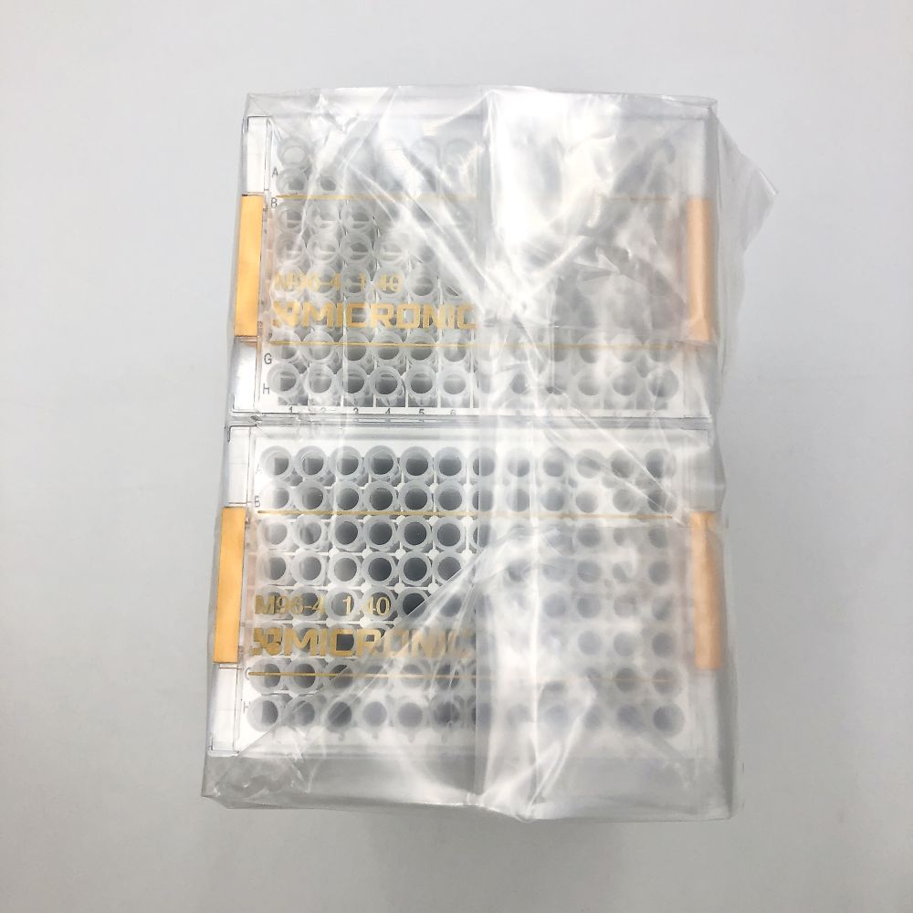 ●チューブ底面にレーザーエッチング加工で2Dバーコード印刷をしているため、2Dバーコードによるサンプル管理が可能です。●ANSI/SLAS規格採用のため、オートメーション化が容易にできます。●クラス7クリーンルームで製造しています。●DNA/RNA/Pyrogen Free●オプションにて滅菌可能です。●オプションにてカスタムバーコード可能です。●正味容量:1.40 mL●ワーキングボリューム:Push cap(+21℃):1.15 mL Push cap(-20℃):1.01 mL Push cap(-80℃):0.95 mL Screw cap(+21℃):1.04 mL Screw cap(-20℃):1.00 mL Screw cap(-80℃ ):1.01 mL●仕様:V底、ラック+チューブ●入数:96本/ラック×10ラック●ファーマット:96well format●Highest purity polypropylene●底面に2次元バーコード付き●サイズ:Tube hight/44.0mm、Tube hight with Push cap/45.0mm●使用温度範囲:液体窒素気相~+100℃●Internal Threadタイプ●Push Capタイプ●★※Push Capは付属しておりません。