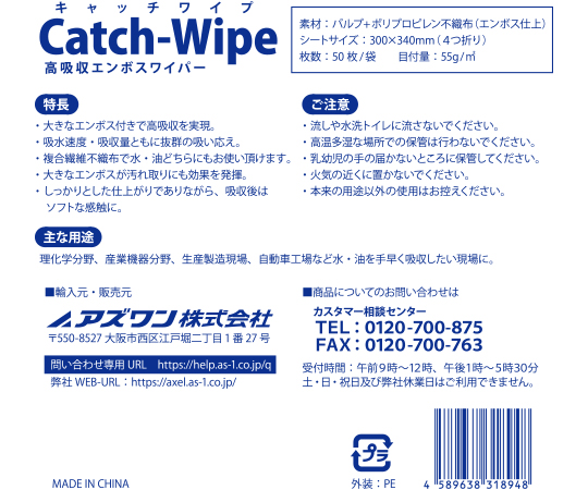 キャッチワイプ 高吸収エンボスワイパー 55g 50枚入 A55