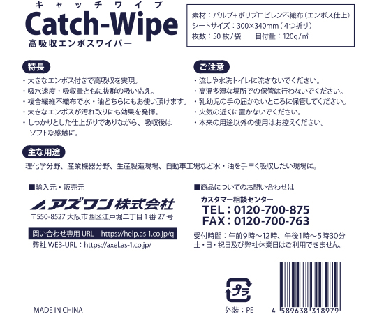 キャッチワイプ 高吸収エンボスワイパー 120g 50枚入 A120