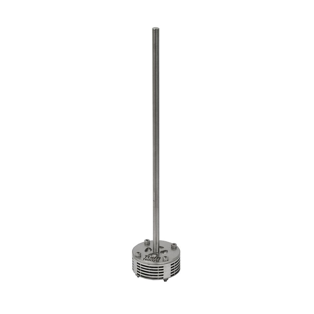●表面積が格段に大きいため動力が分散され、マイルドで液面の波立ちが穏やかな攪拌●翼内部で流体を分割・合流して混合●粒子巻上げ・気体吸込み等、多彩な攪拌が可能●混合エレメント積層枚数の増減により循環流量調整が可能●翼内部に一様なせん断場を形成●軸径:φ8mm●エレメント径:φ60mm●全長:315mm●エレメント長:30mm●材質:SUS316