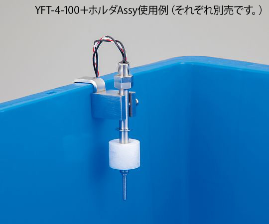 ●フロートスイッチと測温抵抗体(Pt100Ω)が一体化しており、取り付けの省スペース化が可能です。●製品の固定はオプションのホルダAssyで高さ調整および色々な厚み(~30mm)の容器に固定可能です。●フロートはリバーシブル仕様により上昇ON、下降ONどちらでも使用可能です。●検知位置(上昇ON時):取付部より49mm(±3mm)●全長:100mm●ステム長さ:75mm●ステム径:Φ8mm●フロート部径:Φ25mm●先端温度測定部径:Φ3.2mm●リード線長さ:500mm●材質:SUS304●フロート材質:発泡PP●使用液体:水、薬液、油●使用温度範囲:-10~+90℃●最大開閉電圧:AC240V、DC200V●最大開閉電流:AC/DC0.5A●最大開閉容量:AC/DC50VA●接点接触抵抗:350mΩ以下●温度素子:Pt100Ω(B級)●保護等級:IP67