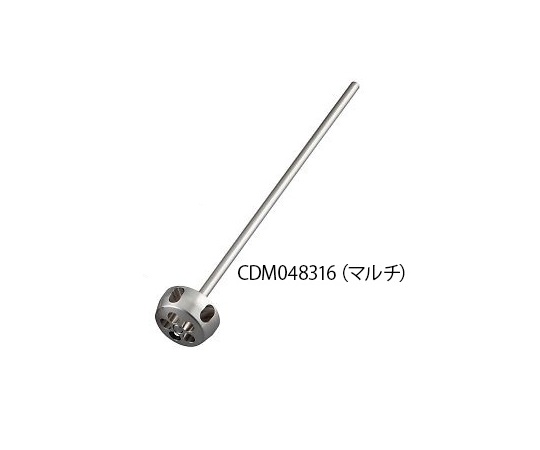 ●回転することで発生する旋回流と下から吸い上げる吸入流が同時に発生して、液体の上下置換を伴う立体的な撹拌流が生まれます。●容器の隅々まで液体が届き、希釈混合・成分均一、均熱が促進され安定した撹拌、時間短縮が可能です。●突起物がなく遠心力で撹拌しせん断力が小さいため、せん断による液体の劣化(酸化)を防ぎ、壊さずに混ぜるような液体の撹拌に適しています。●ヘッドとシャフトがイモネジ止めになっており、高さ調整やヘッドの向きの変更が可能です。●タイプ:マルチ●ヘッド径(mm):Φ48●ヘッド材質:SUS316●シャフト材質:SUS316●シャフトサイズ:Φ8×300mm