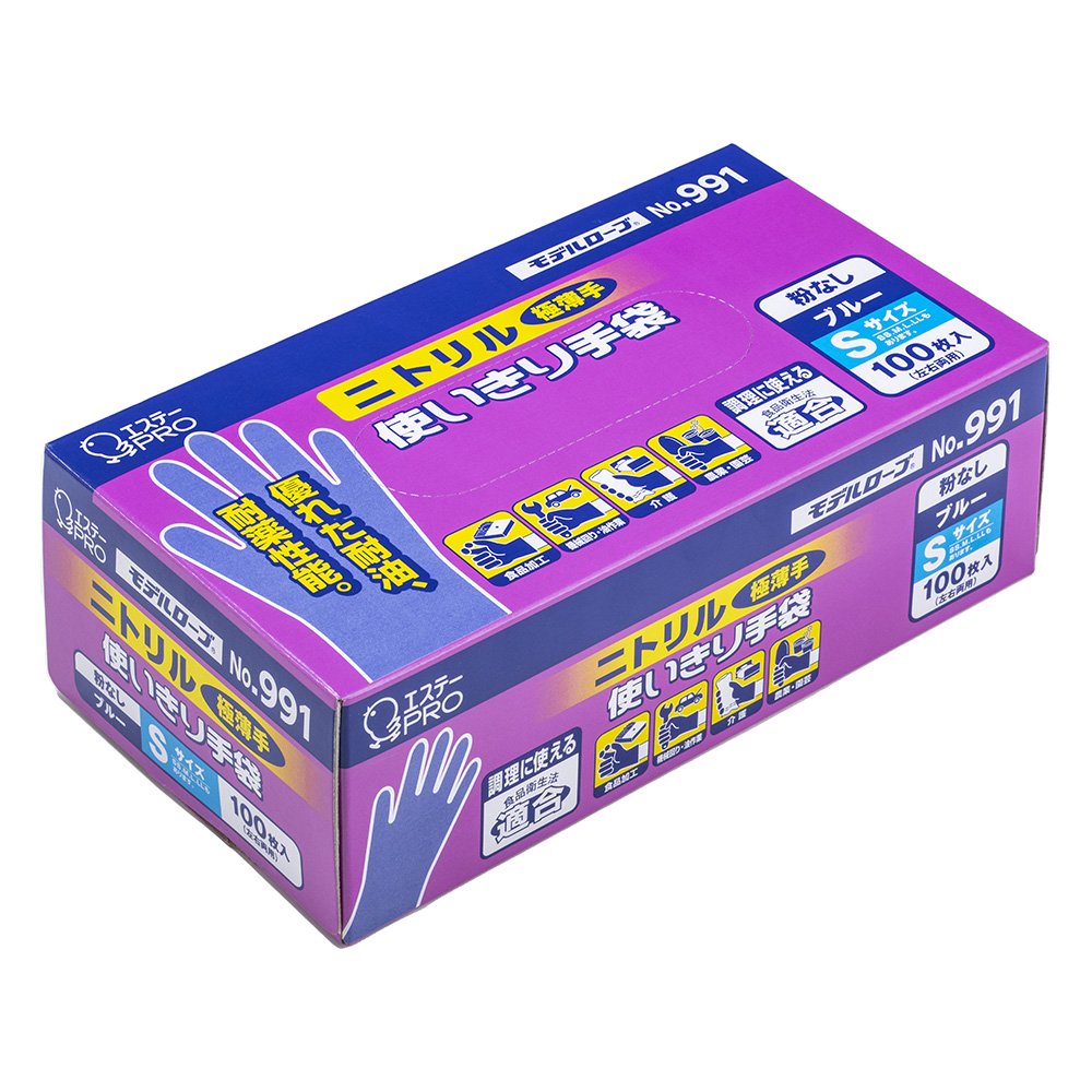 ニトリル使いきり手袋(モデルローブ) ブルー S 1箱(100枚入) No.991