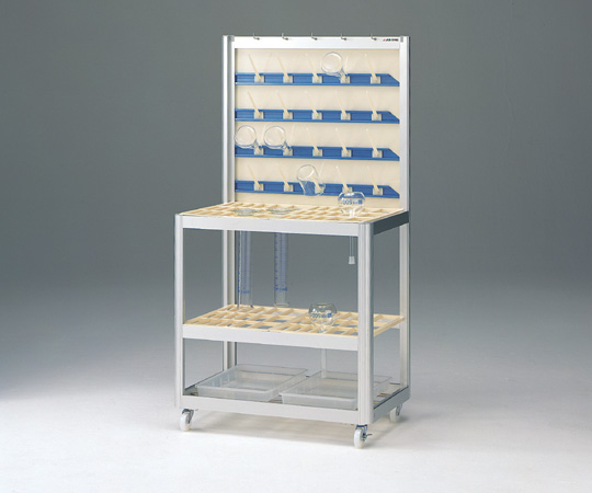 ●棚はシリンダー掛けとしても利用できます。●最上段にはブラシ掛けのフックがあり、最下段の水受けは小物置きとしても使用できます。●ハンガーは着脱可能・移動式です。●棚とバットは取り外し可能です。●材質:本体枠/アルミニウム(耐食アルマイト処理)、ボード・ハンガーレール/PVC(塩化ビニル樹脂)、ハンガー・シリンダー掛用格子棚/ABS樹脂、ブラシ掛け/ステンレス(SUS304)、水受けバット/PP(ポリプロピレン)●重量:15.5kg●キャスター:φ65mmナイロン製(前輪ストッパー付き)●付属品:ハンガー×20本、シリンダー掛け用棚×4枚、水受けバット×2枚●型番:NSNS●サイズ(mm):809×487×1450