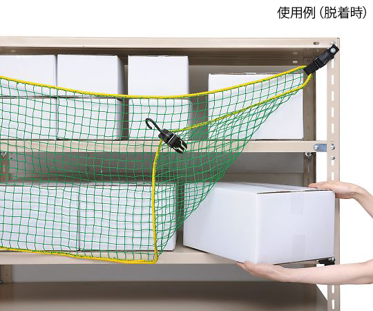 ●ワンタッチで脱着ができるため、作業の負担になりません。●接着金具付きで、棚への穴あけ加工が不要です(ボルト固定と選べます)。●ネット周囲を黄色ロープで加工しているため、強度・視認性が高いです。●サイズ(mm):1320×700●ネット材質:PE●色:ネット/グリーン、ロープ/イエロー●網目:25mm●結び目:無結節●付属品:ネット×1枚・ハトメ付きバックル/5個・接着金具/5個・取り付けボルトナット/5個