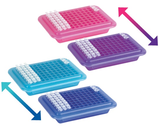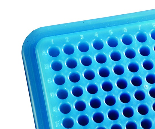 ●事前に冷蔵庫で冷やしておくことで、氷なしで96ウェルプレートを1時間0℃に保ちます。●フタなしでもサンプルの温度を3時間、5℃以下に保ちます。●温度が6℃を超えると、色が変化します。●フタはスライド式で左右どちらもの操作に対応でき、裏返すとスタンドになります。●蓋は短辺側側面が開いているので、冷凍庫内でサンプルの冷却時間を短縮します。●チューブを素早く識別できるよう英数字の印字があります。●色:ピンク/ライトブルー●変色:ピンク→紫、ライトブルー→紺●変色温度:6℃●入数:1箱(2個入)●材質:ラック/PP、フタ/ポリカーボネート●適用チューブ:0.2mL、0.5mL●ウェル数:96●サイズ:110×148×48mm●使用温度範囲:-20~+60℃