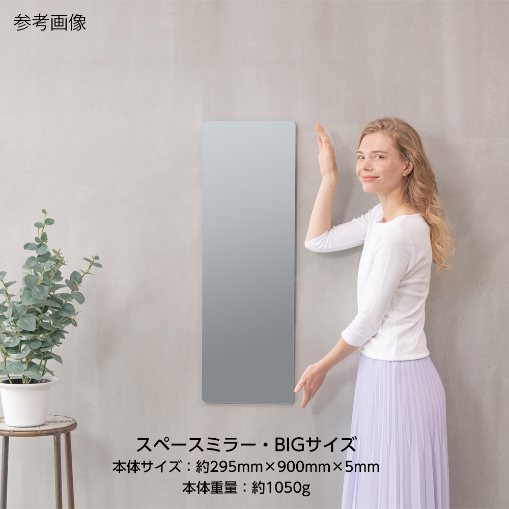 ●衝撃に強いPET樹脂性ミラーのため、安心・安全です。●強粘着両面テープ6カ所固定タイプです。●仕様:BIGサイズ●サイズ(mm):295×900●材質:PETフィルムミラー・PS・アルミ