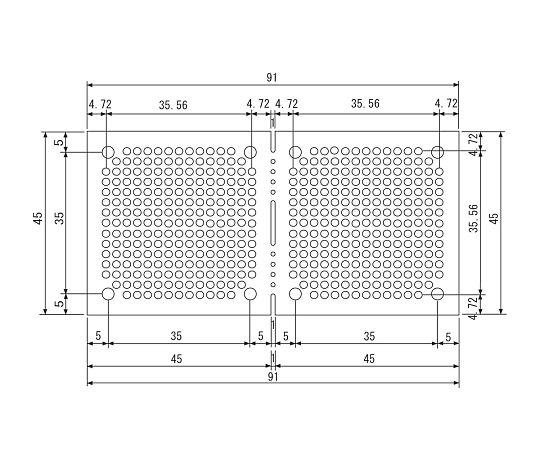 ●サイズ(mm):45×91●厚み(mm):1.6●材質:両面・ガラスコンポジット●仕上げ処理:スルーホールハンダ●パターン:2.54mmピッチ、ドットパターン、穴径φ1.0