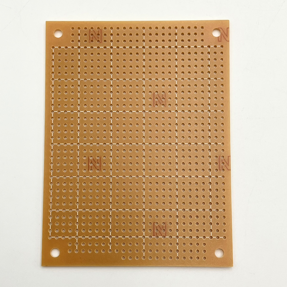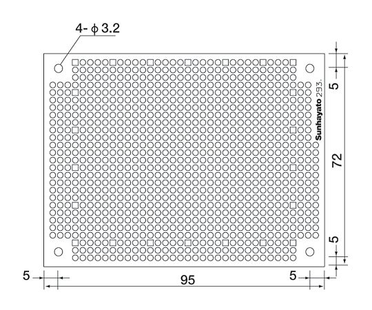 ●サイズ(mm):72×95●厚み(mm):1.6●材質:片面・紙フェノール●仕上げ処理:フラックス、部品面シルク印刷●パターン:2.54mmピッチ、ドットパターン、穴径φ1.0