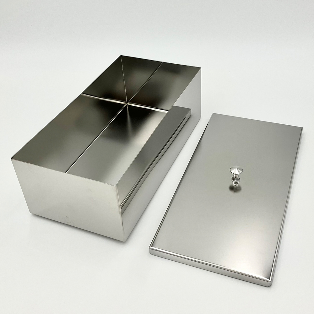 ●角が鋭角なステンレス容器です。●蓋がついているため、保管に便利です。●外寸法(mm):300×150×100●厚み(mm):0.9●材質:SUS304