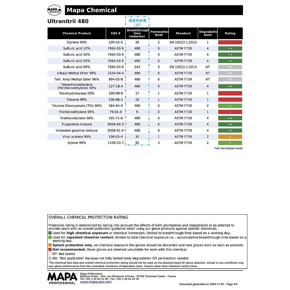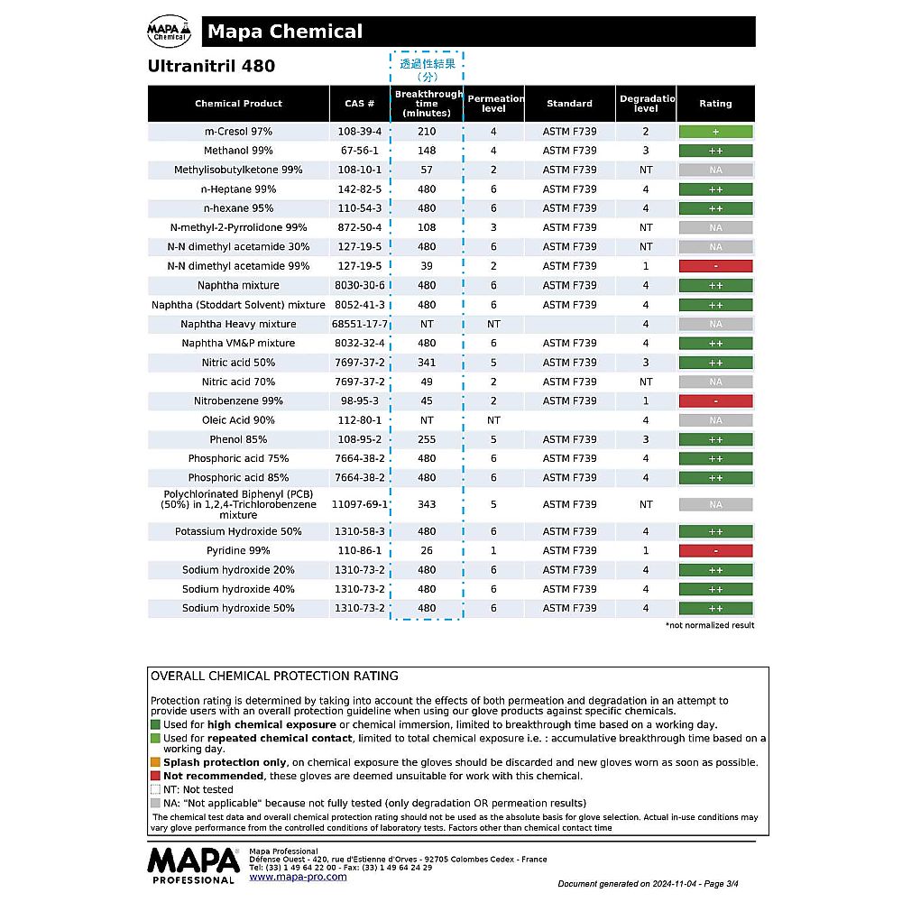 ウルトラロング耐薬ニトリル手袋 ULTRANITRIL 480 M