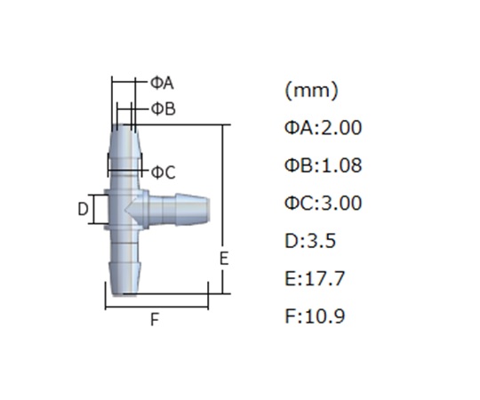 チューブコネクター(軟質チューブ用) T型同径 ID1.0-2.0 1袋(10個入) EBTC20