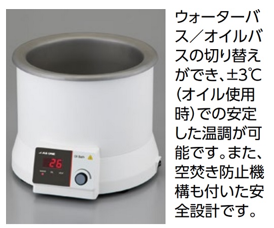 ●ウォーターバス/オイルバスの切り替えができ、±3℃(オイル使用時)での安定した温調が可能です。●空焚き防止機構も付いた安全設計です。●仕様:オイルバス●サイズ:300×320×240mm●容量:約4.5L●表示:LED●温度設定範囲:室温+5℃~180℃(1℃単位)●温度調節精度:±3℃●最大消費電力:1000W