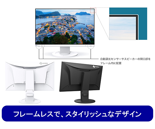 ●周囲の明るさを感知し、画面の明るさを自動で調整します。●ブルーライトカット機能が付いており、目の負担を減らします。●サイズ:22.5型●色:ホワイト●種類:IPS(アンチグレア)●視野角(標準値):水平178°/垂直 178°●最大輝度(標準値):250 cd/m2●画素ピッチ:0.254×0.248mm●最大表示色:約1677 万色:8 bit 対応●映像入力端子:DisplayPort(HDCP1.3)HDMI(HDCP1.4)D-Sub 15 ピン(ミニ)●USB 機能/ USB ハブ:USB 3.1 Gen 1:Type B(アップストリーム)USB 3.1 Gen1:Type A x 2(ダウンストリーム)●昇降:140.0mm●縦回転:右回り/左回り 90°●チルト:上35°/下5°●スウィーベル:344°●電源:AC100~240V±10% 50/60Hz●本体(スタンド含む):499×233×333.9~473.9mm●モニター部:499×53.6×321.3mm●本体(スタンド含む):約5.5kg