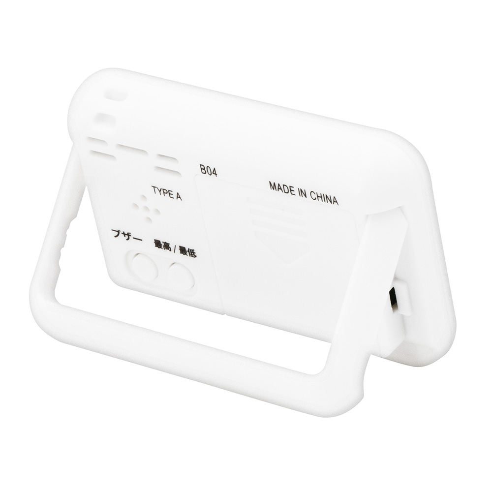 ●【用途】●▼屋外、体育館でのスポーツ、工場、道路工事、建設工事、農作業など、労働環境の安全管理に。●【特徴】●▼熱中症指数(WBGT)、温度、湿度を同時に表示●▼危険度を4つのレベル表示●▼アラーム(ブザー)付●▼ご家庭や日常生活における 熱中症の危険性を知るために ●▼ストラップ付で持ち運びに便利●▼ステンドを開いて卓上でも使用できます●タイプ:みはりん坊ジュニア●表示項目:WBGT※、温度、湿度(測定項目:温度、湿度)●JIS B 7922精度区分:-●本体寸法:62×40×12.5mm●重量(電池含ム):約26g●アラーム音量(距離10cm):約65dB●電源:CR2032形リチウム電池×1個●付属品:取扱説明書、テスト用電池、ストラップ●※WBGT=熱中症指数