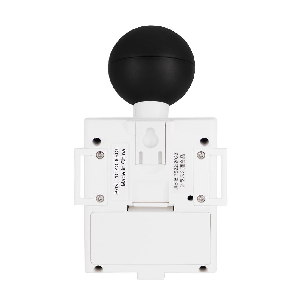 ●JIS B 7922 : 2023適合、クラス2準拠です。●WBGT(熱中症指数)のアラーム設定が可能 (20~50℃)です。●使用場所に合わせて屋内(室内IN)と屋外(室外OUT)のモード選択が可能です。●WBGT(熱中症指数)・湿度・温度(または黒球温度)の同時表示が可能です。●両側のフックにベルトを通して、本体を装着したり固定することが可能です。●熱中症の危険性を知るために、労働環境の安全管理に便利です。●市販のカメラ用三脚に取付可能です(三脚穴ネジ1/4-20UNC)。●全球形黒球(直径40mm)を使用しています。●おまかせモードで自動アラームが可能(日本生気象学会「日常生活における熱中症予防指針」の厳重警戒、危険の範囲で動作)です。●アラームブザーの音量切り替えが可能(大・小・オフ)です。●JIS規格:JIS B 7922 : 2023 クラス2(新JIS規格対応)●表示項目:WBGT(熱中症指数)、温度、相対湿度、黒球温度●測定項目:温度、相対湿度、黒球温度●WBGT(熱中症指数):測定範囲/0.0~50.0℃ (表示範囲/-2.0~52.0℃、最小表示/0.1℃)●温度:測定範囲/0.0~50.0℃ (表示範囲/-2.0~52.0℃、最小表示/0.1℃)●相対湿度:測定範囲/20.0~90.0%RH (表示範囲/0.1~99.9%RH、最小表示/0.1%RH)●黒球温度:測定範囲/0.0~80.0℃(表示範囲/-2.0~82.0℃、最小表示/0.1℃)●動作環境(使用範囲):温度/0~50℃、相対湿度/0~90%RH、風速/0.3m/s以上(ただし、結露しないこと)●黒球●▼サイズ:外径φ40mm、厚さ1.8mm●▼材質:耐熱ABS●▼放射率:0.94●WBGTのアラーム設定範囲:20.0~50.0℃、0.1℃刻みで設定可能、上限値アラーム設定のみ●アラームブザー音量:大/約70dB、小/約60dB(距離10cm)、ブザーオフ(設定可能)●本体寸法:67.5(W)×47.5(D)×114.5(H)mm(ベルト用アタッチメント、黒球含む)●重量:約90g(電池含む)●電源:単4乾電池×2本(テスト用付属)●付属品:取扱説明書・ベルト・アタッチメント