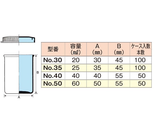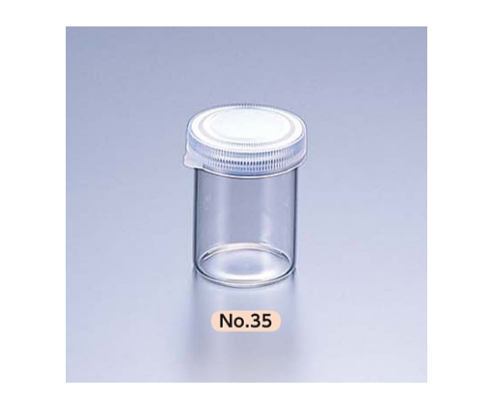 ●型番:No.35●材質:本体/硼珪酸ガラス、オーバーキャップ/PE(ポリエチレン)●オーバーキャップ付き(コルク栓別売)●耐熱温度:本体/約180℃、オーバーキャップ/約60℃●容量:25mL●胴外径×全長:φ35×45mm●入数:1箱(100本入)●サンプル瓶●コード番号:0202-07