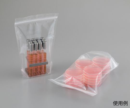 ●生鮮検体・生体サンプル等、液体を含む試料保管のために開発されたサンプルバッグです。●透明でガスバリア性に優れたフィルムを採用し、ヒートシールが可能で、脱酸素剤、乾燥剤の併用も可能です。●一般的なチャックとは異なり、チャック部からの気体・液体のリークを限りなく抑制した特殊チャックを採用しています。※完全密封を保証するものではありません。内容物、保存条件に応じて、お客様での予備試験を行ってください。●高密封特殊チャック採用!!●チャック下×幅+底幅(mm):160×100+30●入数:1袋(50枚入)●自立スタンディングパウチ●材質:外側/透明蒸着PET・バリアナイロン、内側/LDPE●チャック:高密封特殊チャック(プラロック?)/LDPE●最大容量:0.3L(目安として、15mL遠沈管×5本、50mL遠沈管×2本が入ります。)●★※培養環境調整剤 カルチャーテック(CULTURE-TECH)シリーズご使用の場合には、嫌気環境調整剤AN-Pを1個、培地保存用脱酸素剤KSを1個をご使用ください。●★※空気容量の制限が難しいため、微好気環境調整剤との併用は推奨しません。