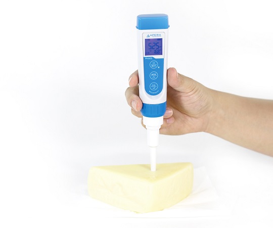 ●固体や半固体の測定に便利な突き刺し形です。●バックライトの色が操作状況によって変化します(測定時:青、校正時:緑、アラーム時:赤)。●自動温度補償付きで、測定の際に温度測定も同時に行えます。●測定値が安定すると笑顔マークが表示されます。●水に浮くため、水に落とした時に回収できます。●測定項目:pH・温度●測定範囲:pH/0-14.00、温度/0~50℃●測定精度:pH/±0.01±1digit、温度/±0.5℃、●分解能:pH/±0.01pH、温度/0.1℃●機能:バックライト、ホールド、オートパワーオフ(8分)、ローバッテリー表示●校正:1-3点●温度補償:自動温度補償(0~50℃)●防塵・防水:IP67●電源:単4乾電池×4本(テスト用付属)●サイズ:φ40×220mm●重量:143g●付属品:標準液/pH4.01、pH6.86、pH9.18、kcl 3mol