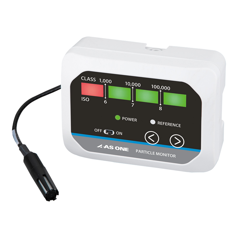●多点計測、常時モニタリングが可能なエコノミータイプ●空気中に浮遊する粒子を計測可能なモニターです。●工場内、精密部品工程の製造工程、クリーン度が必要な作業環境における空気洗浄度管理の見える化を実現可能です。●清浄度クラス1,000~100,000を4段階のLEDで表示します。●クリーンルームや製造工程といったコンタミネーション対策を必要とする環境で汚染度の見える化に貢献します。●非常にコンパクトで設置が容易です。●検知粒子径:0.3μm以上●サイズ(mm):120×46.5×87●測定方式:光散乱方式●光源:レーザーダイオード●サンプリング方法:ファンによる吸引●測定範囲:Class1,000~100,000 ※Class1,000は参考値●出力単位:pcs/m3(デフォルト)、pcs/cf、pcs/L●センサ出力値:60s合計値●データ更新時間:1s●電源電圧:12V~24V●重量:約0.21kg●温湿度計測機能:×●Reference表示:〇(数um以上)●アナログ出力:〇●デジタル通信:×●アラーム出力:〇●付属品:ACアダプター