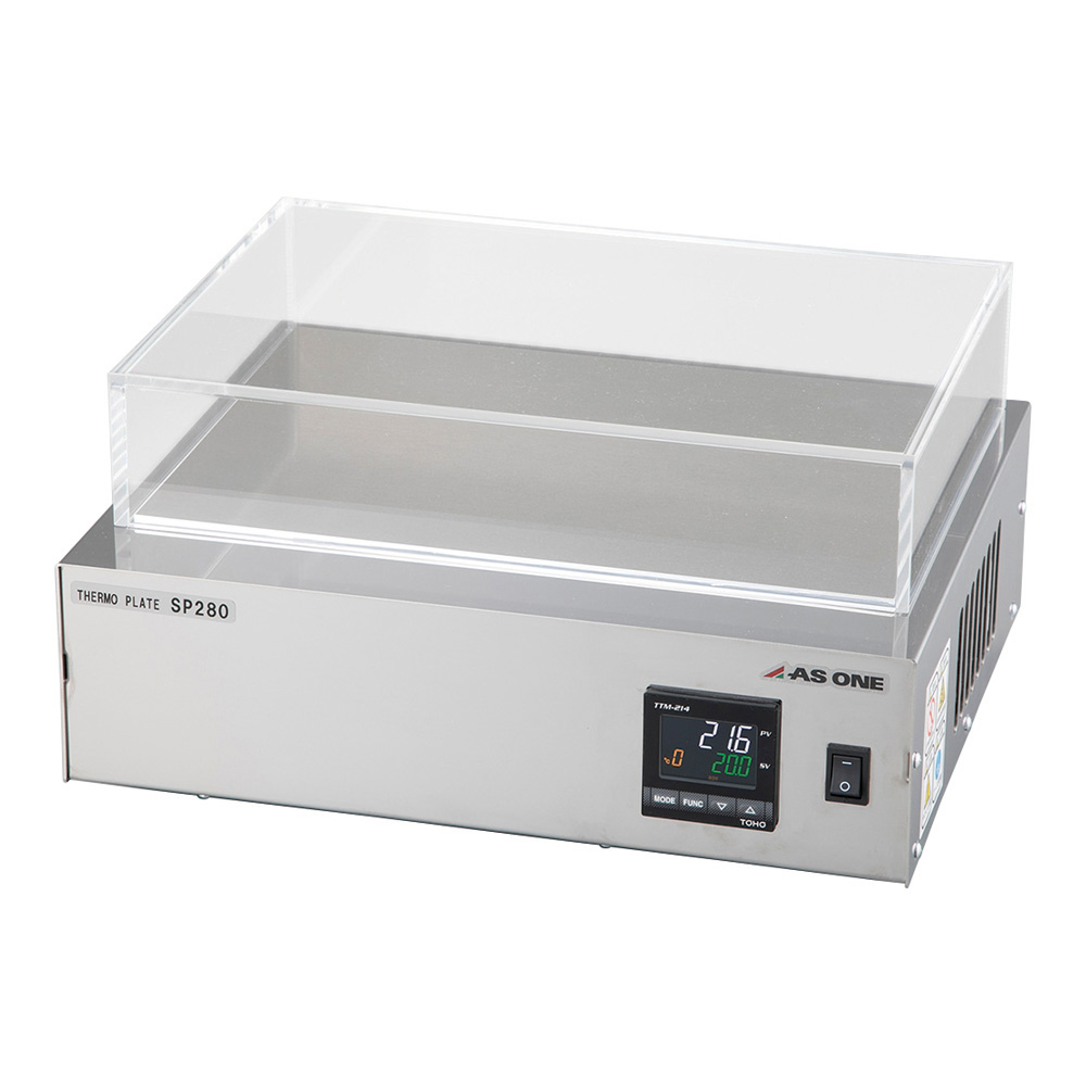 ●設定値と実測値がひと目でわかる2段デジタル表示式です。●ペルチェ素子のPID制御により高精度の温度制御が可能です。●タイマー付きです。●天板が大きいため、大きい試料・サンプルの実験に適しています。●冷却・加熱両方対応可能です。●大きいプレートの冷却・加熱タイプ!●プレートサイズ(mm):280×190●設定温度範囲(℃):0~60(室温/-20~60℃)●★入数:1個●温調方式:ペルチェユニット●温度制御方式:PID制御●プレート材質:アルミニウム●タイマー:ONタイマー、OFFタイマー、SVスタート●耐荷重:5kg●外寸法:310×262(突起含む)×110mm●電源:AC100V 50/60Hz(Pアース付きコード/2.5m)●最大消費電力:200W●安全装置:過電流保護(ガラス管ヒューズ5A)、過昇防止(手動復帰型バイメタル(作動温度/70℃))●重量:5kg●付属品:アクリルカバー●※設定温度は0℃以下は使用不可です。