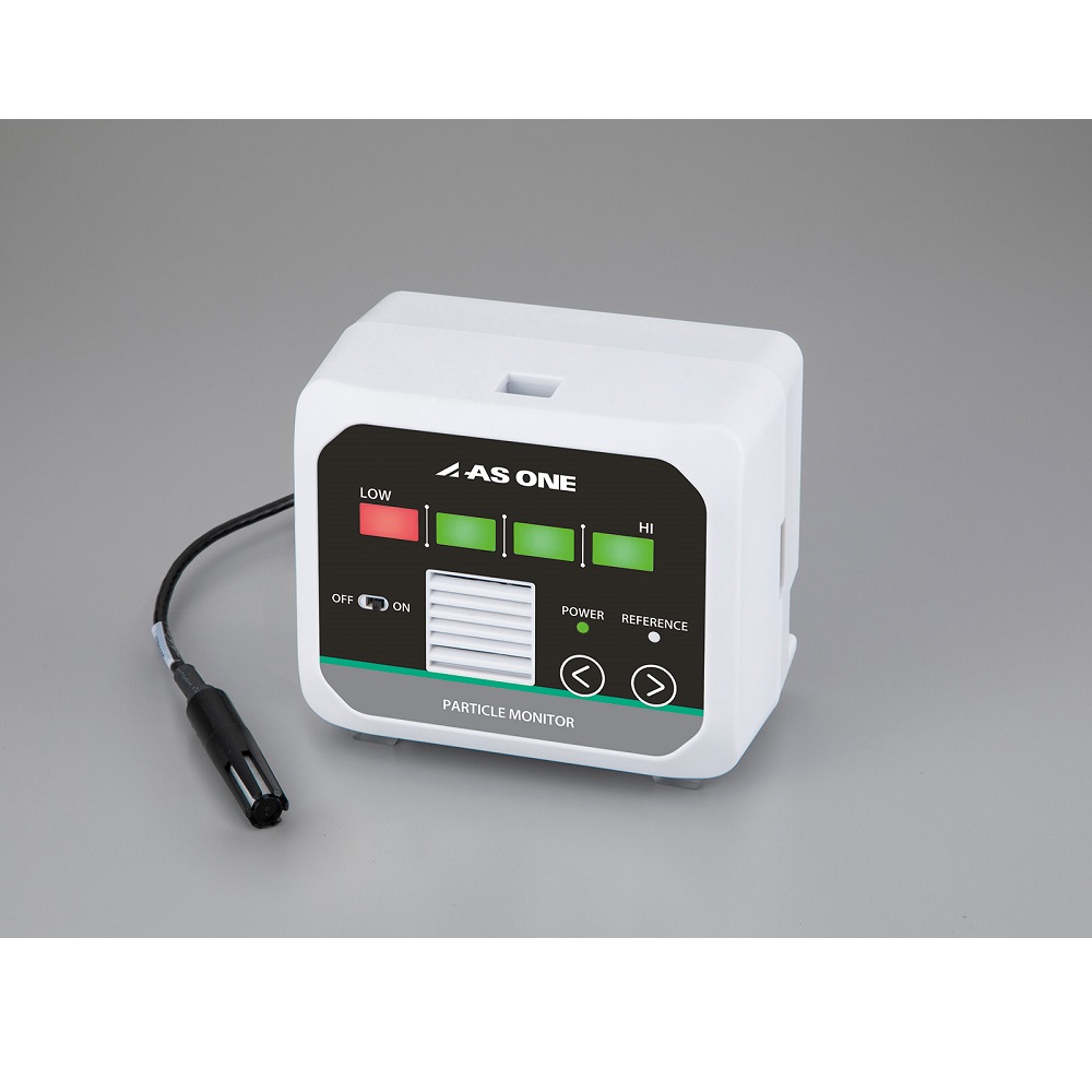 ●多点計測、常時モニタリングが可能なエコノミータイプ●浮遊せずに落下する粗粒子の個数濃度を4段階LED表示できます。●評価用ソフトを使用することで個数濃度をリアルタイムに監視、記録することが可能です。●別売の温湿度センサー(4-3762-11)が接続可能で評価用ソフトを使用することで温湿度をリアルタイムに監視、記録が可能です。●製造プロセスにおけるコンタミネーション対策、品質向上と不良率低減に効果的です。●クリーンルームや製造工程といったコンタミネーション対策を必要とする環境で汚染度の見える化に貢献します。●非常にコンパクトで省スペースで設置可能です。●検知粒子径:5μm以上(※1)●サイズ(mm):125×76×110●★重量(g):約370●★入数:1個●測定範囲:Class10,000 ~ 100,000●測定方式:光散乱方式●光源:レーザーダイオード●サンプリング方法:ファンによる吸引●出力単位:pcs/5min(デフォルト)、pcs/m3、pcs/cf、pcs/L●センサ出力値:300s合計値●データ更新時間:1s●電源:DC24V●出力通信:警報アラーム出力、RS485、アナログ(電圧)出力、Ethernet通信、Wi-Fi通信●温湿度計測機能:〇(※2)●Reference表示:〇(デフォルト:30um以上 ※3)●アナログ出力:〇●デジタル通信:〇(Ethernet、Wi-Fi)●アラーム出力:〇●付属品:ACアダプター●(※1) 評価用ソフトで5μm、10μm、20μm、30μm、50μm に変更は可能です。(10μm 以上は参考値です。)●(※2) 評価用ソフトを使用することで数値が表示されます。●(※3) 評価用ソフトで変更は可能です。●※清浄な雰囲気中でご使用ください●●専用アプリケーション(v81.2.2)のダウンロードはこちらから●●★MAC・IP表示モードについての資料はこちらから