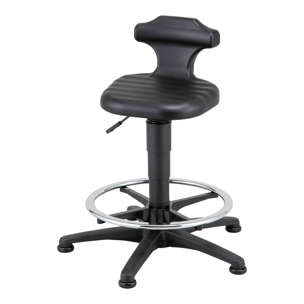 ●座面は波状で滑りにくくなっています。●70%イソプロパノールや70%アルコールなどにも耐性があり、クリーンルームや研究所での使用に適しています。●ドイツ製の堅牢なラボ用スタンディングチェアー●フットリング:付き●座高(mm):540~790●★入数:1個●材質:座面/ポリウレタンフォーム、ベース/ポリアミド、フットリング/クロムメッキスチール●座面サイズ:350×310mm●全高:710~980mm●昇降方式:ガスシリンダー式●重量:約13kg●組み立て式